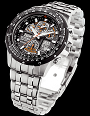 Igazi szenzációval lepte meg a CITIZEN az órakülönlegesség kedvelőket! A férfias és erőteljesen markáns vonalvezetésű új Eco-Drive szerkezetes, azaz fényenergiát hasznosító modell, már 1/1000 mp. pontossággal képes mérni stopper funkcióban. A mért idő tized és század másodperceit segédszámlapon analóg módon jeleníti meg! A mutatók forgási sebessége emberi szem számára szinte már követhetetlenek! Az eltelt idő mérésén kívül, 20 köridőhöz tartozó memória tárhely és átlagsebesség számláló is tartozik. A pontos idő mellett, egyéb más speciális funkciók közt megtaláljuk a világidő funkciót, a visszaszámláló riasztást, az ébresztőt és a LED Light típusú háttérvilágítást is. Az óra szerkezetét, 20 bar-ig fokozottan vízálló, titánium Ti.C.C. antiallergén, bőrbarát óraházba helyezték, melynek súlya méretéhez mérten is, igen csekély maradt. A CITIZEN új ezredese minden téren az élen jár a technikai újítások közt, hiszen power-saving üzemmódban akár 4 évig képes működni. Rádiójel vezérelt